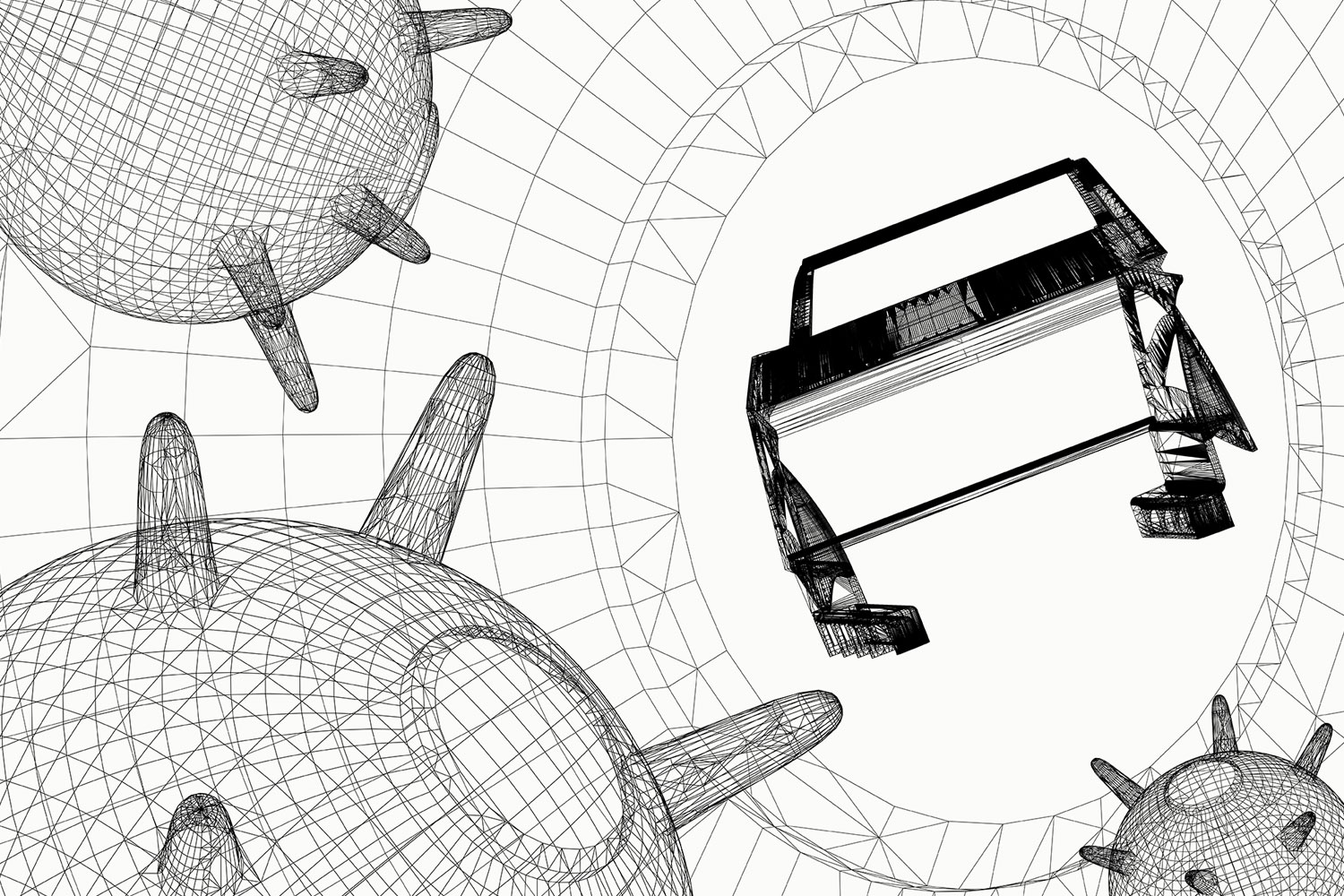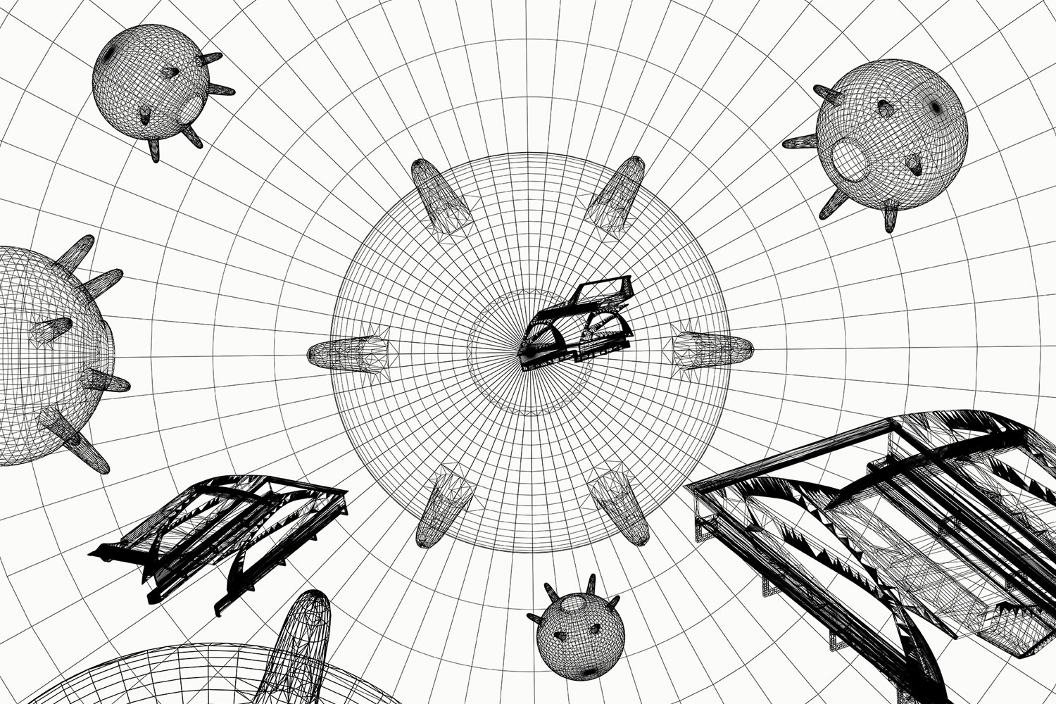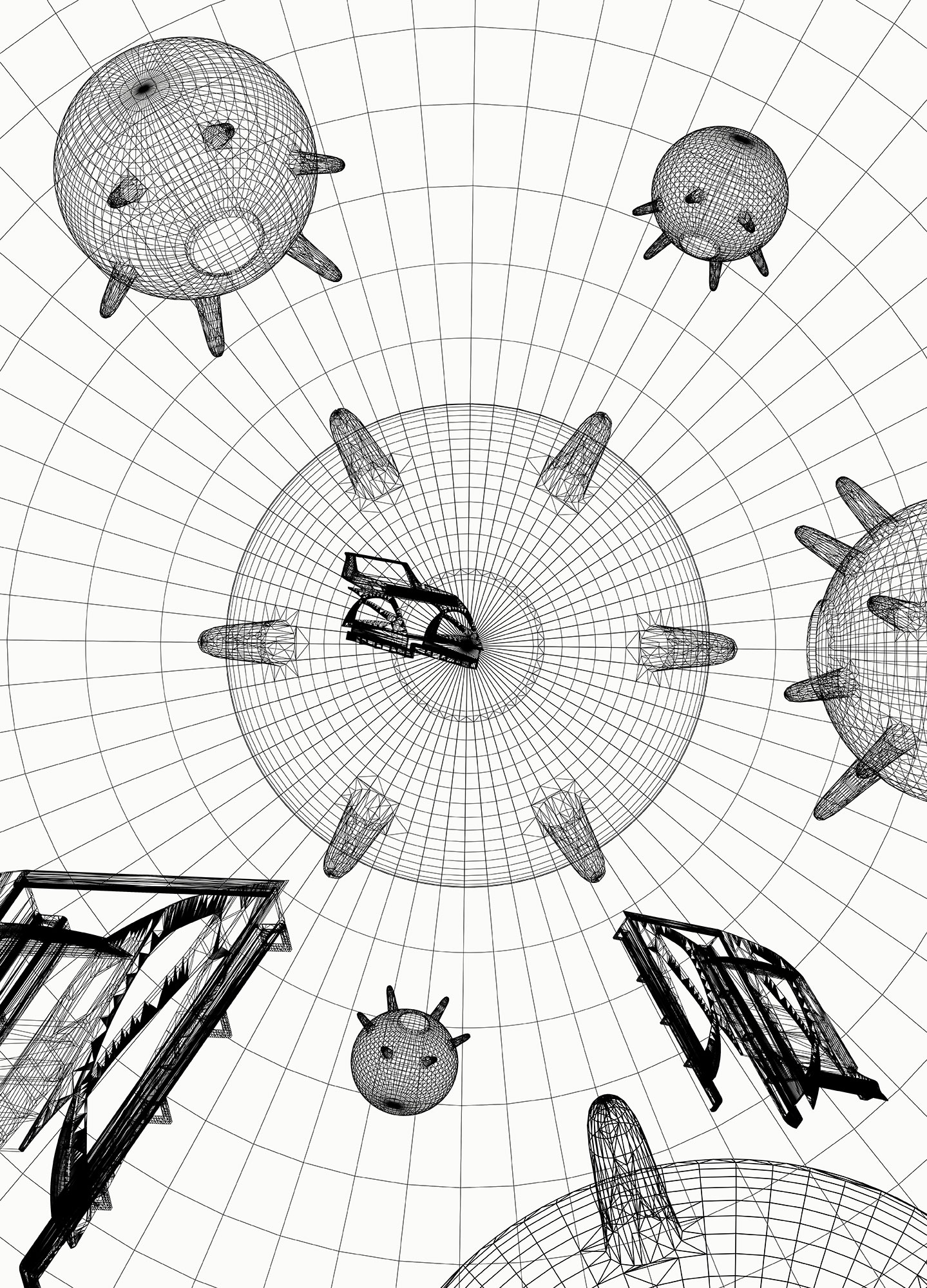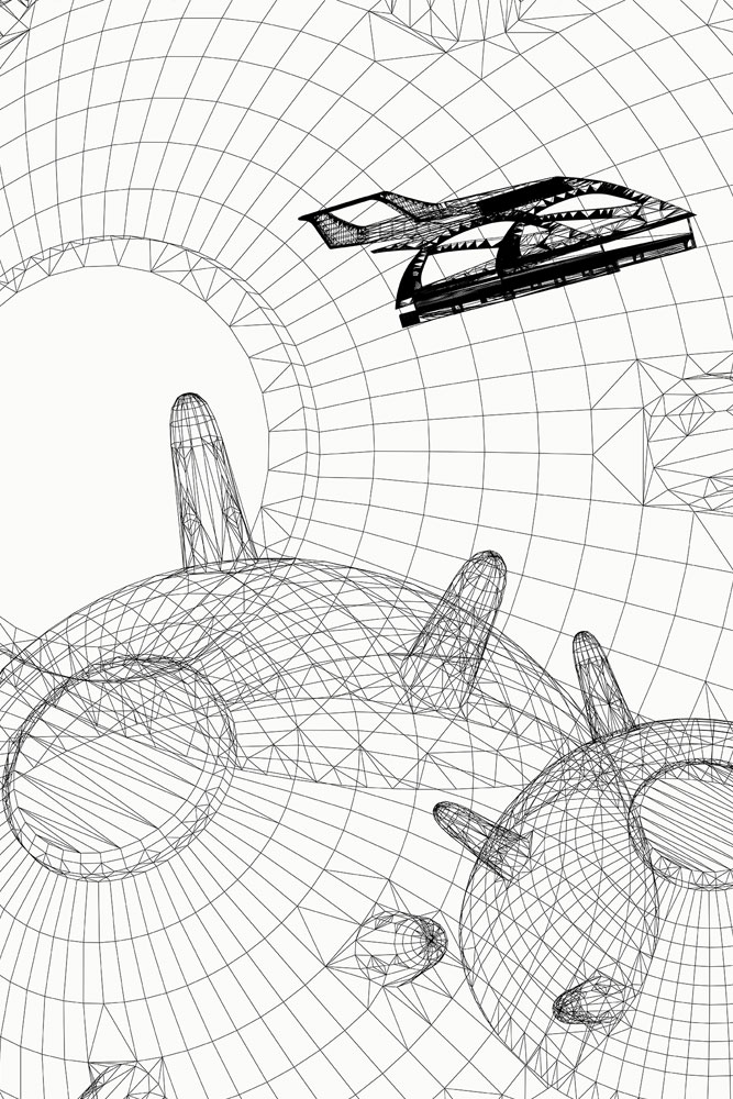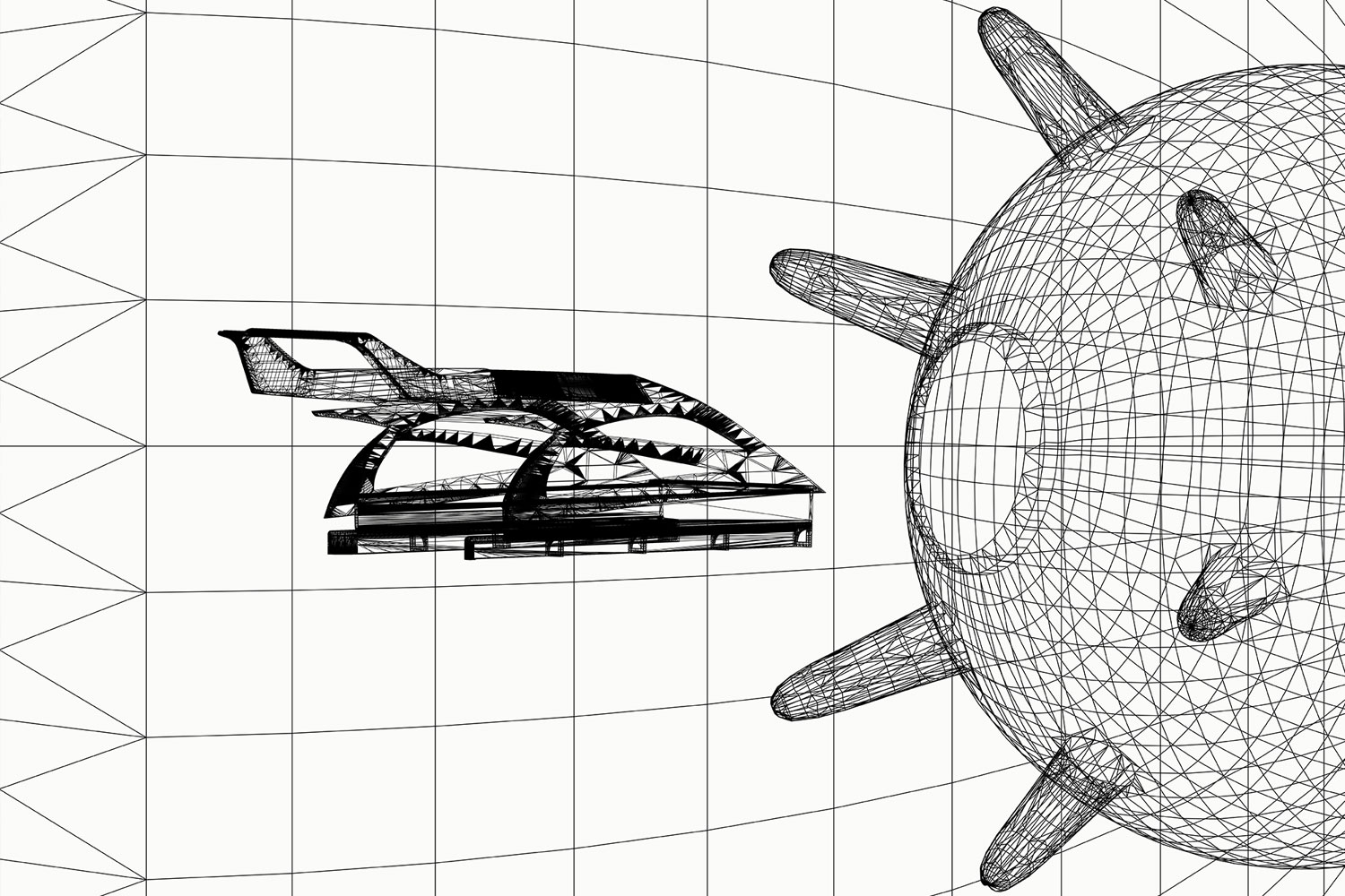 yacht: 480 x 559 x 1389 cm, 3 mines: each 50 x 100 x 100 cm